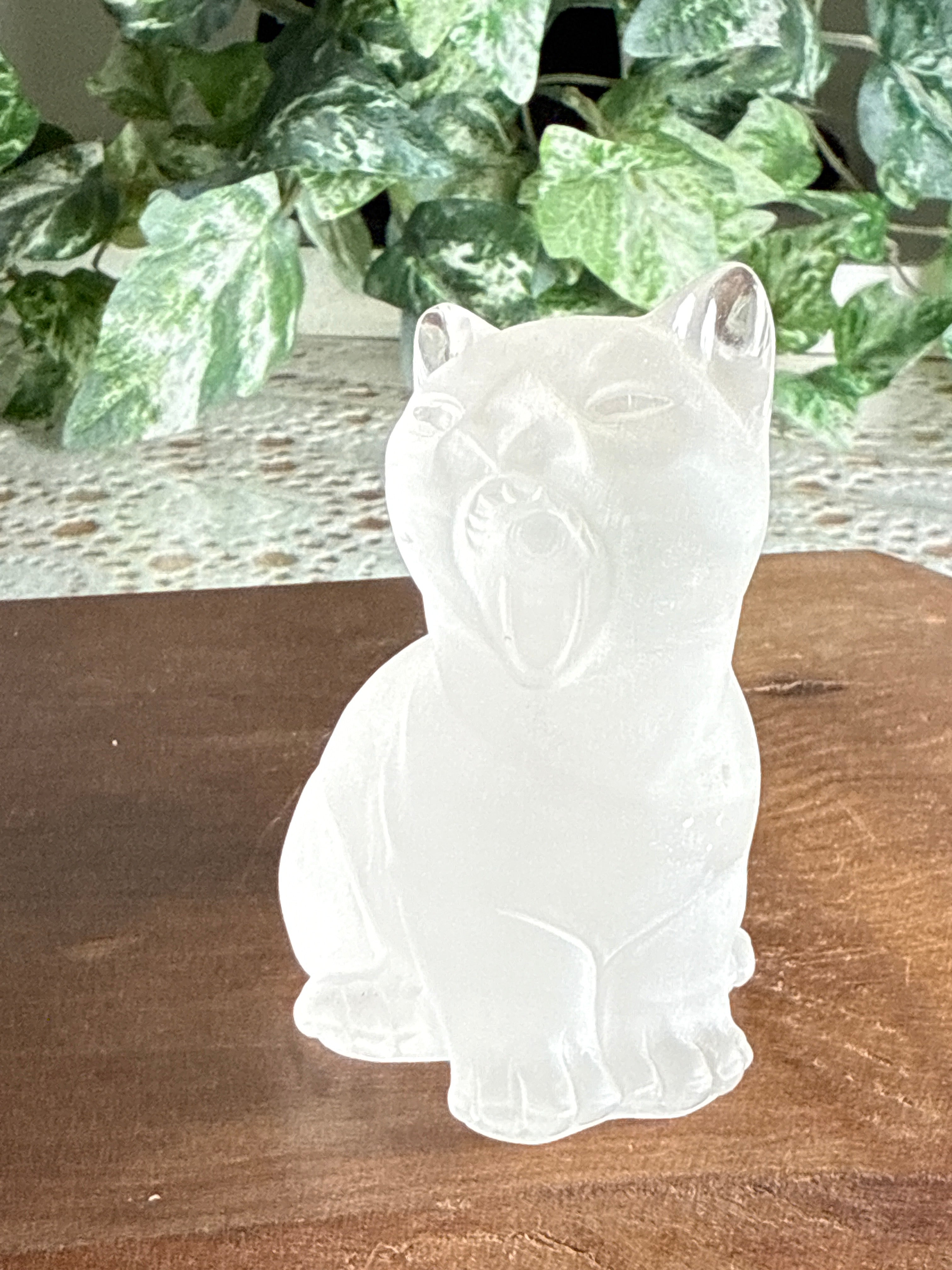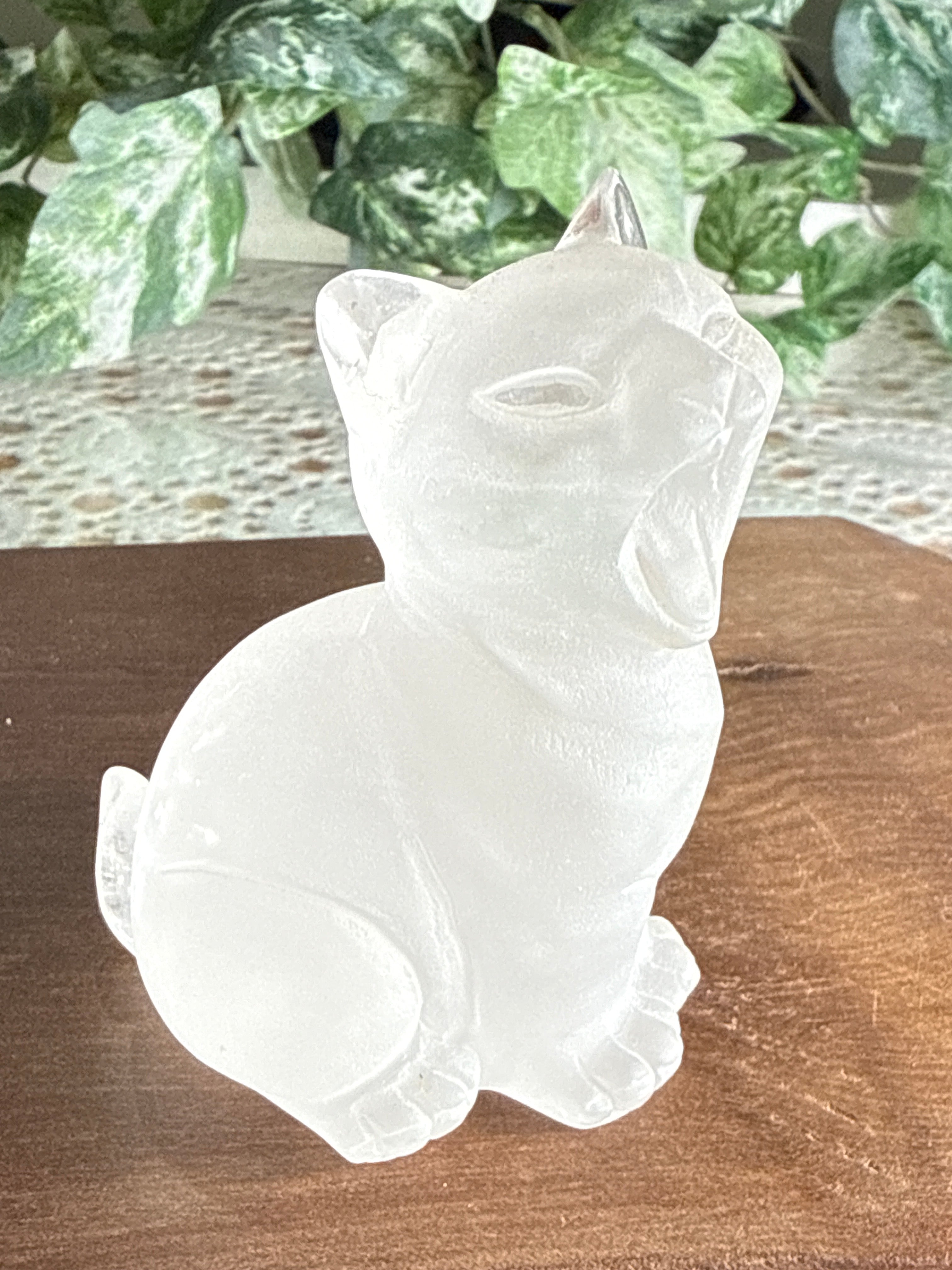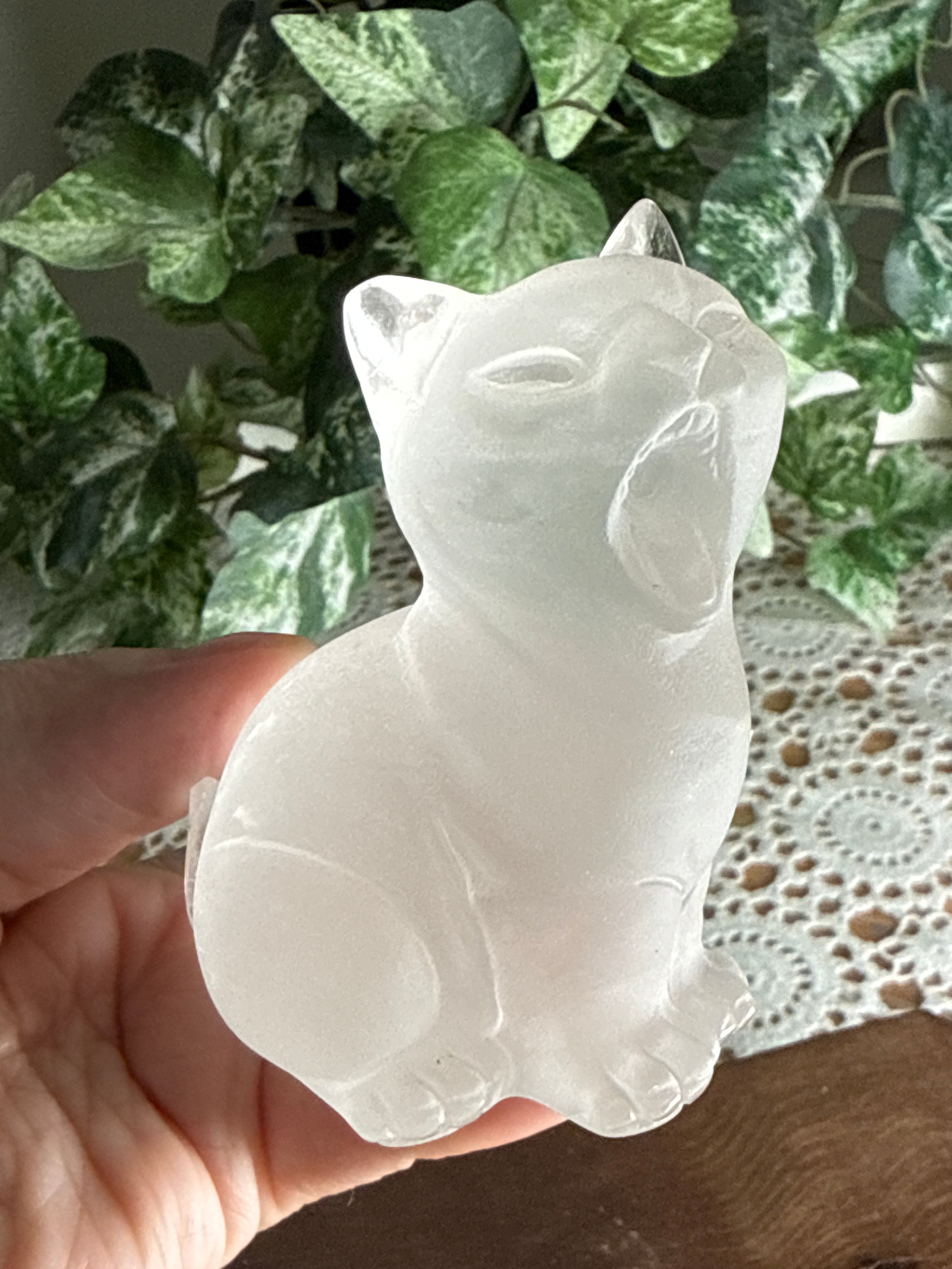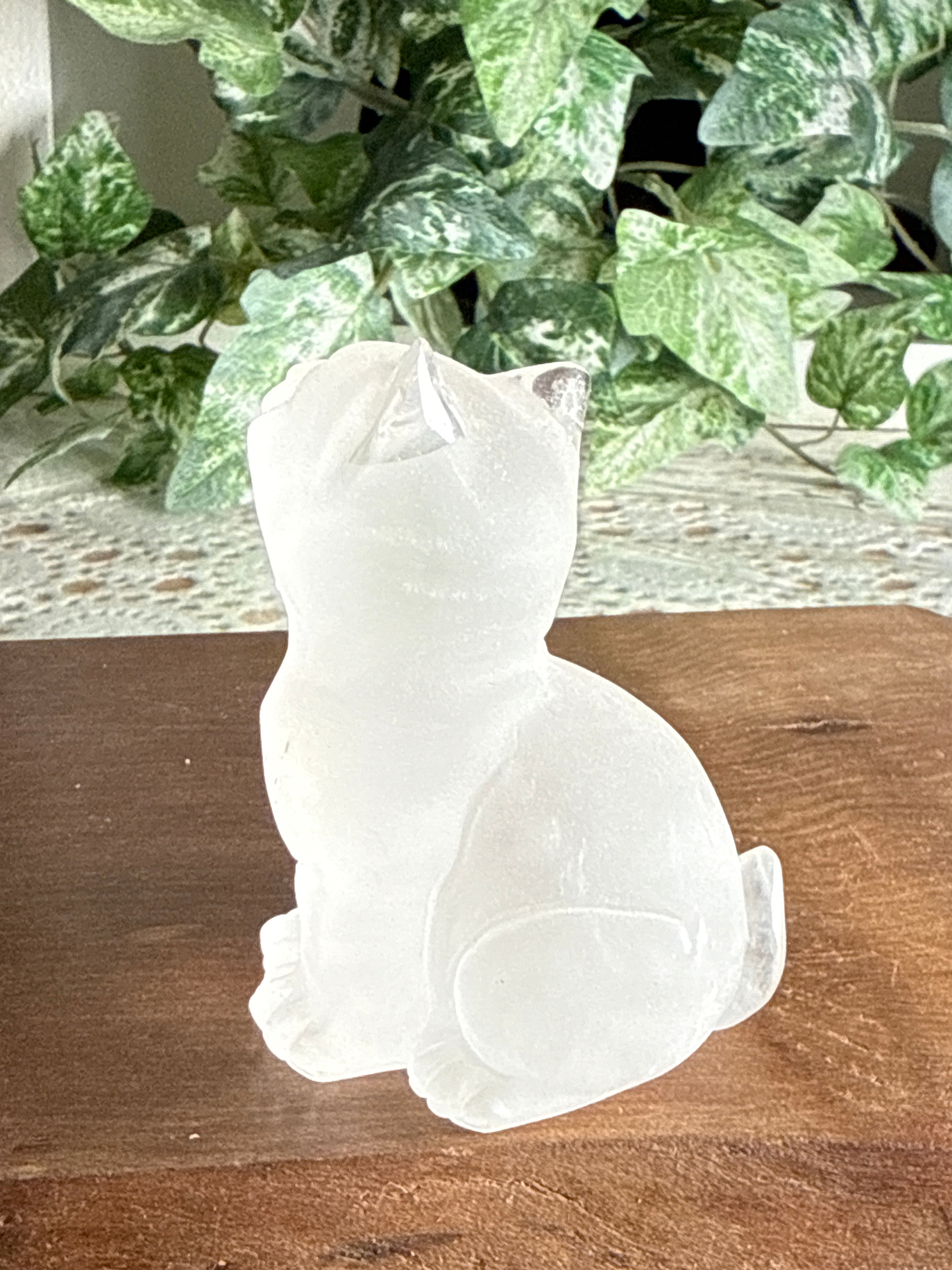 Clear Quartz Cat | Hand Carved | Frosted Matte Finish