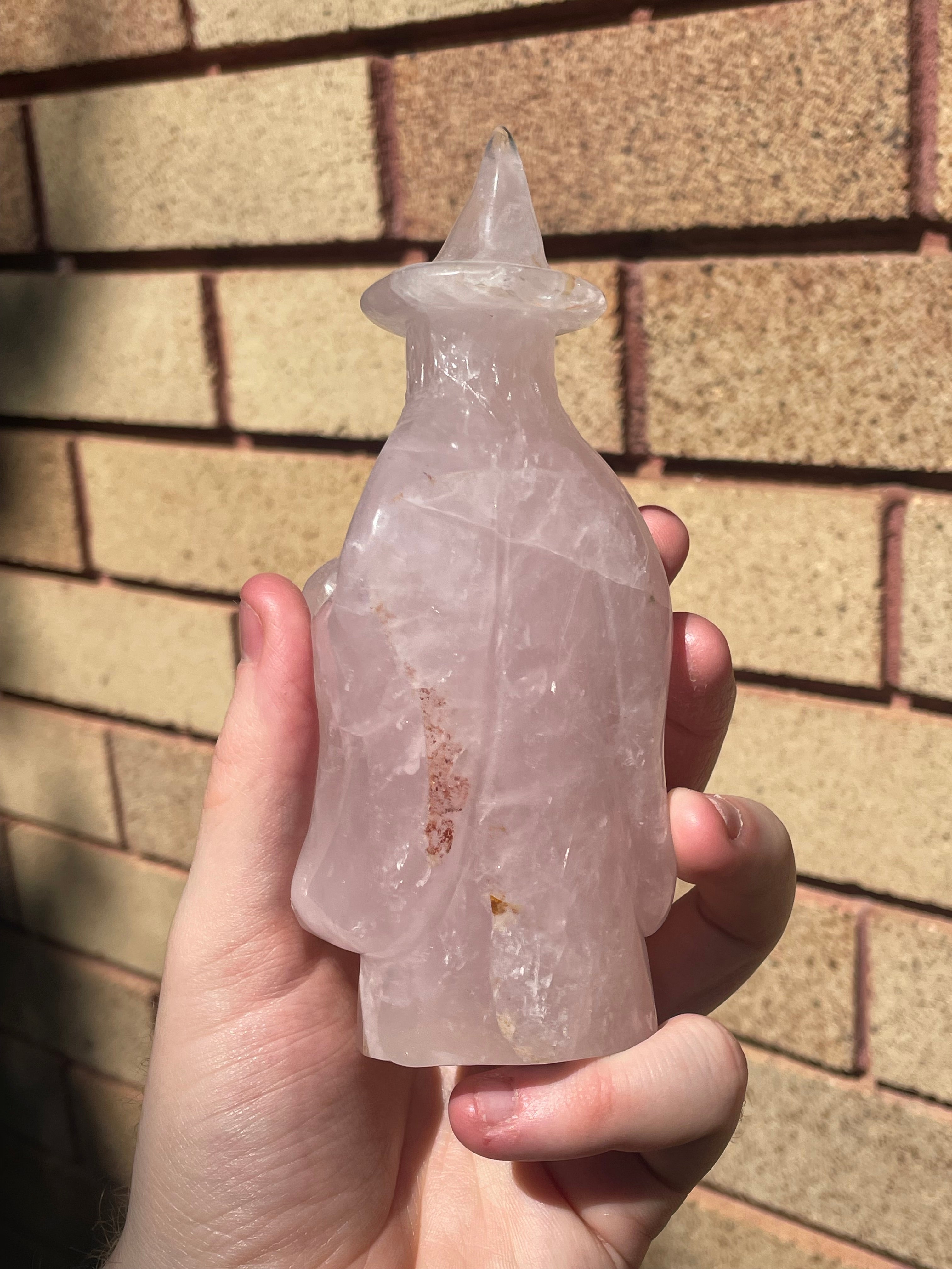 The wizard archetype represents mastery, guidance, and transformation. Paired with the nurturing energy of Rose Quartz, it becomes a symbol of using knowledge with kindness, balancing wisdom with love, and walking your path with both clarity and compassion.